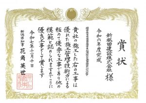 令和7年度 新潟県優良工事・優秀技術者表彰